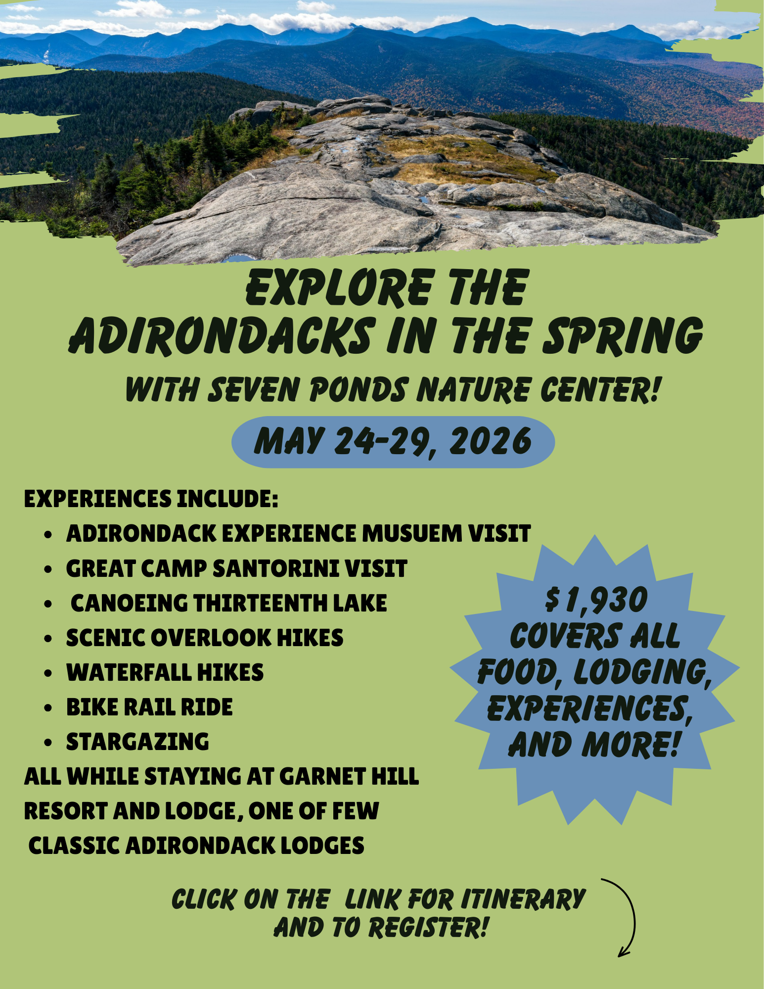 In the event there is not sufficient snow or ice, alternative activities will be provided.