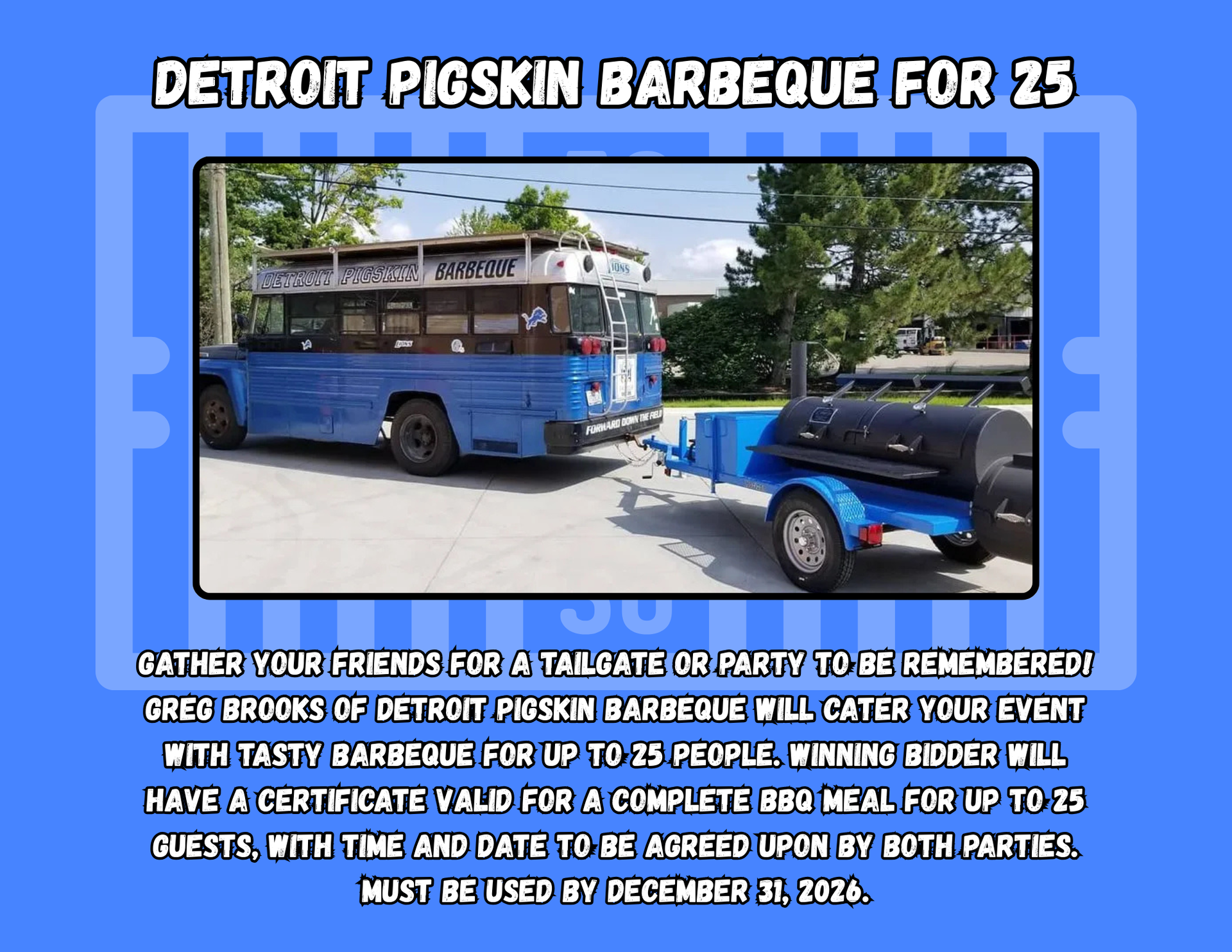 If you are unable to attend our Holiday Auction but would still like to bid on an item, you may place a remote bid by contacting Board member Charlie Turner via email at charlie@detsales.com.