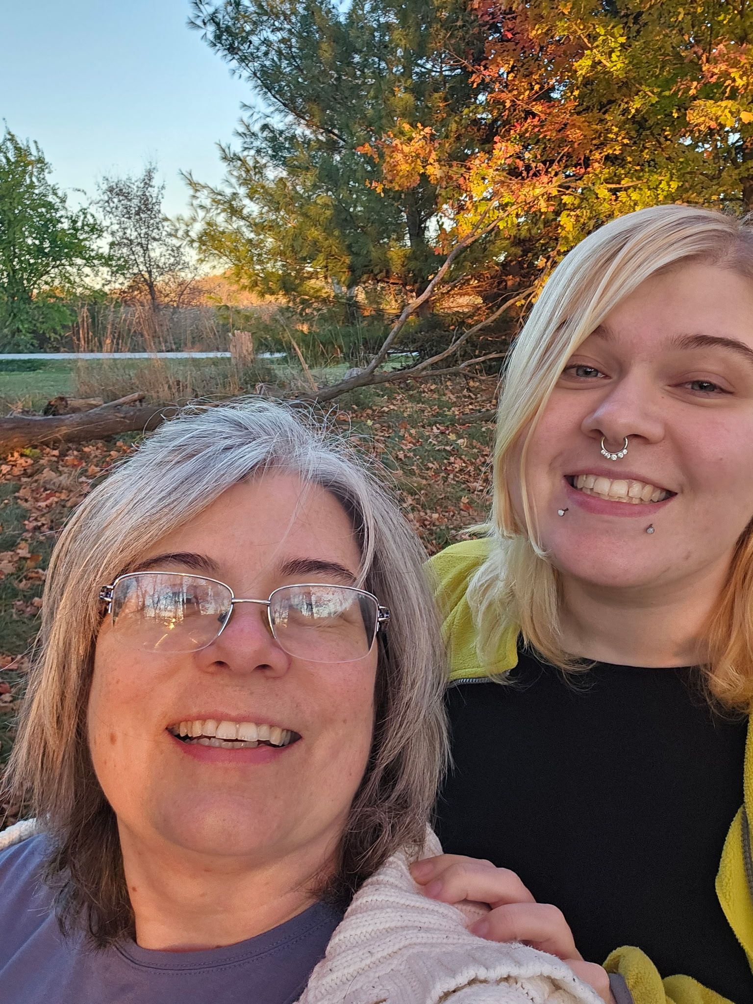 Gina and Kat enjoying a beautiful fall walk on the Polly Ann Trail