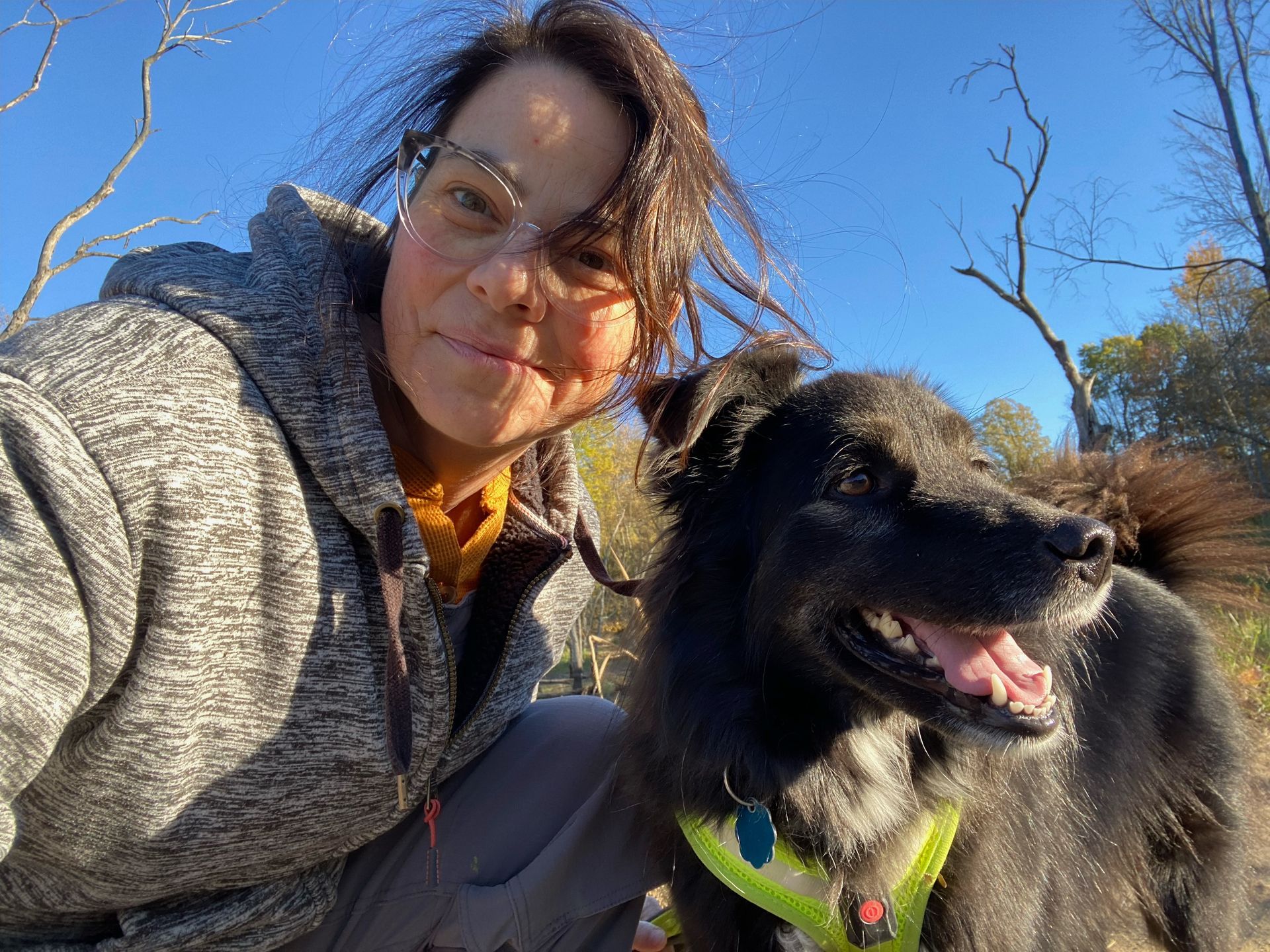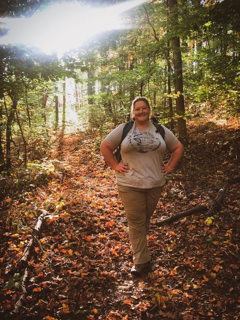 Amy trekking the trails at Seven Ponds on a beautiful fall day