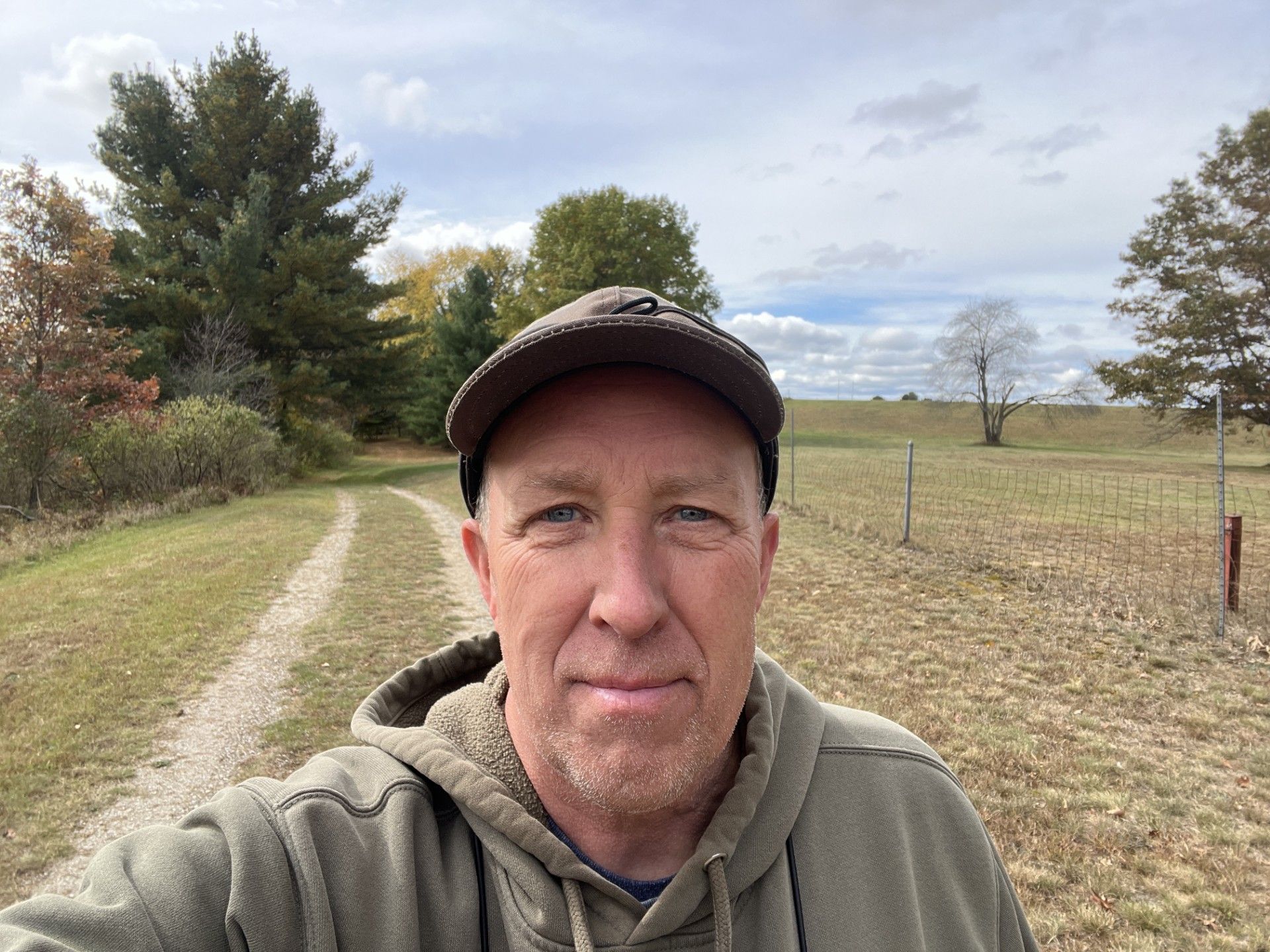 Daryl trekking the Evart Nature Trail on a crisp October day